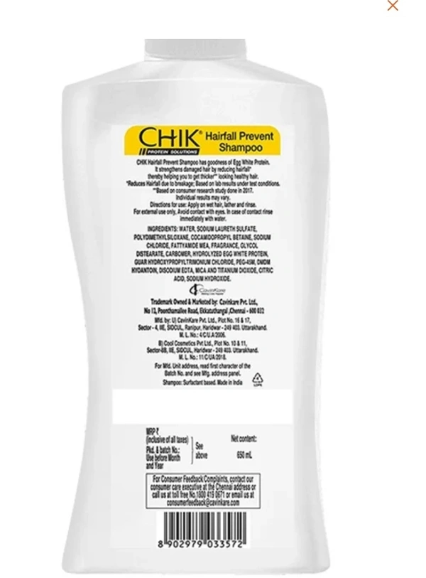 Chik Egg White Protin Hearfall Prevent Shampoo.. 650ml